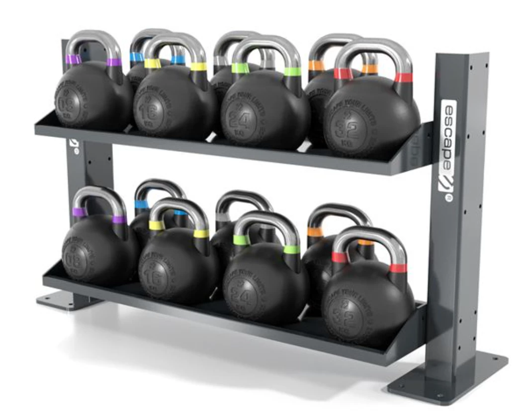 Keep kettlebells in competition condition with high-grade steel racks made in the UK. Reduce your storage footprint but max out practicality, as these shelves link with each other, to an Octagon frame, or freestand closer to a wall.
