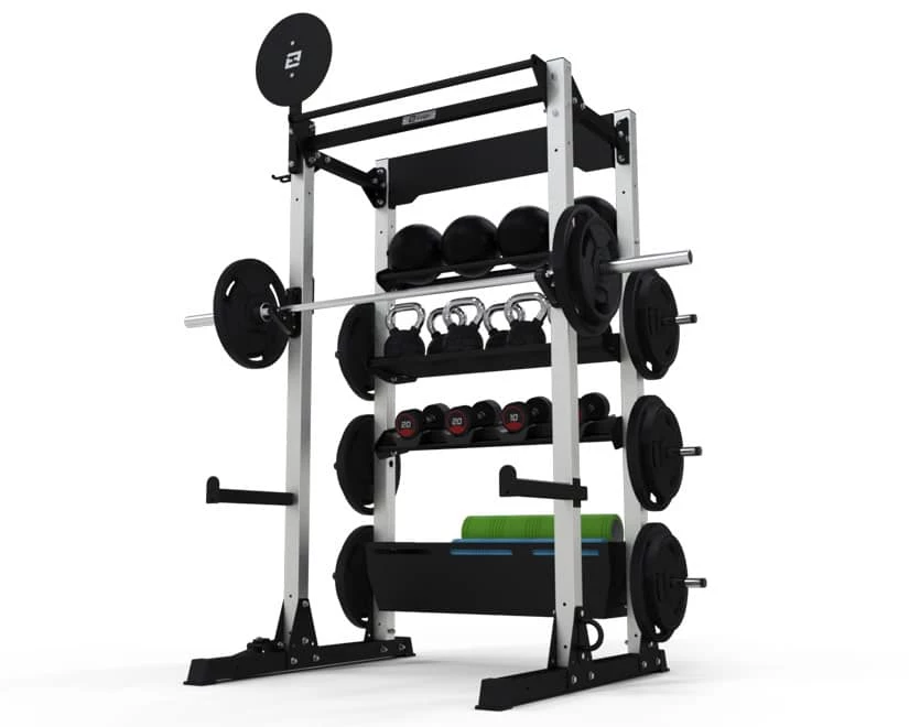 The Exigo E70 Half Rack SG has been designed to hold up to 4 internal 110 storage shelves of your choice to store various accessories inside of the rack. This free-standing rack is fully commercial, made with heavy duty 70x70x3mm thick steel uprights, and is a great space saving solution. Ideal for squatting, benching, pull ups, and more with a choice of optional attachments. Perfect for personal trainers, commercial facilities, and home/garage gyms. A pair of E70 J-Hooks are included.Â
