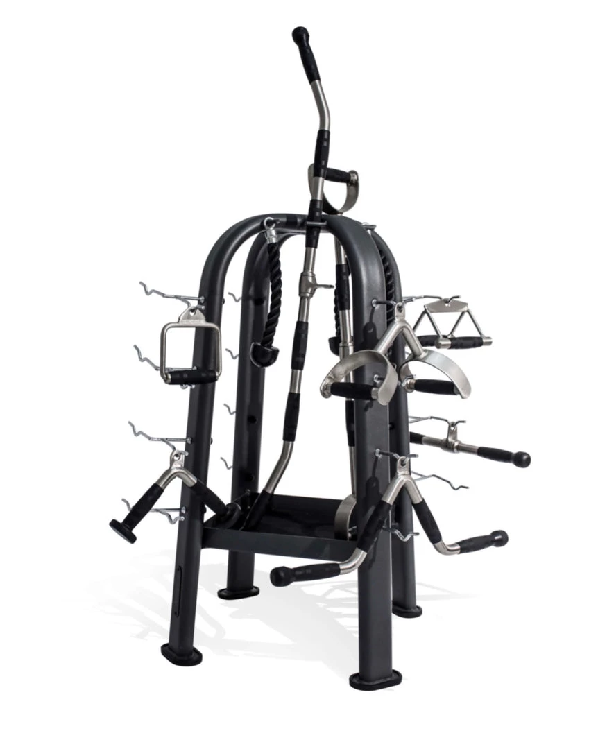 Our new easy access cable Machine Attachment Rack has been designed to hold up to 16 attachments on the frame.