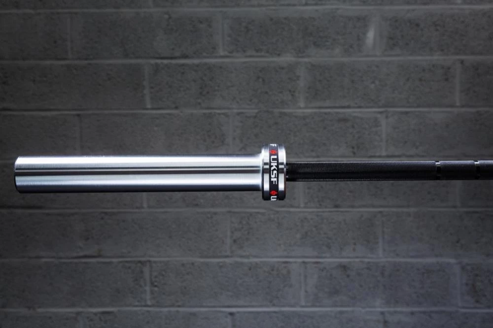 The addition of a groove in the sleeve enables athletes and coaches to more easily identify and differentiate bars by changing out the bands. The bar comes standard with UKSF-branded bands, but you can swap them out with any custom, personalized band that matches the dimensions.