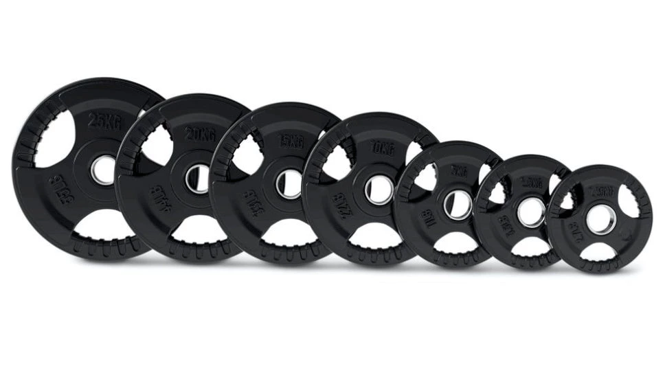 Our Tri Grip Olympic discs are perfect for workouts with Olympic Bars and also as hand held weights for a complete total body workout