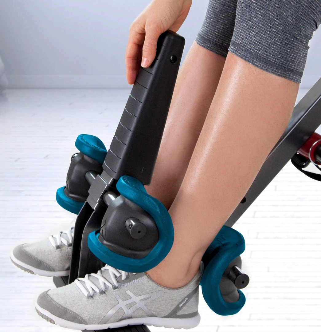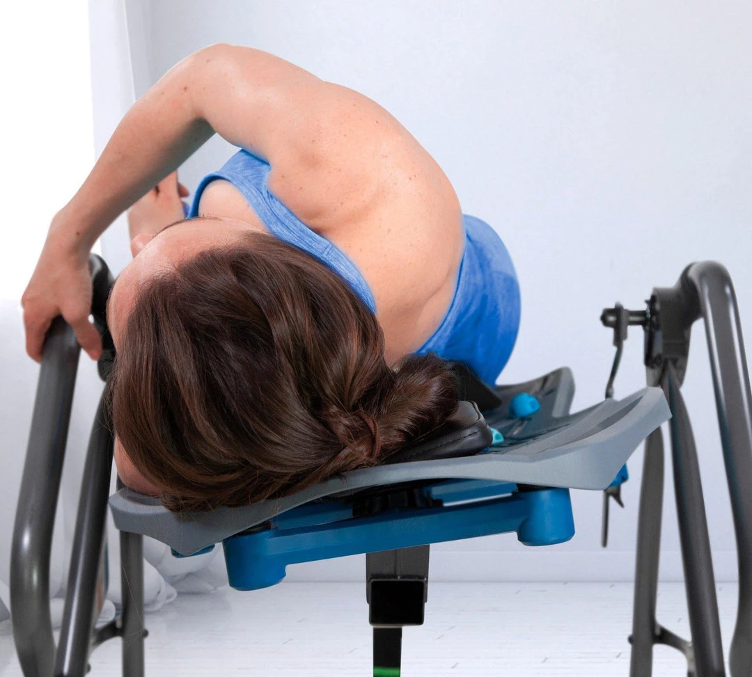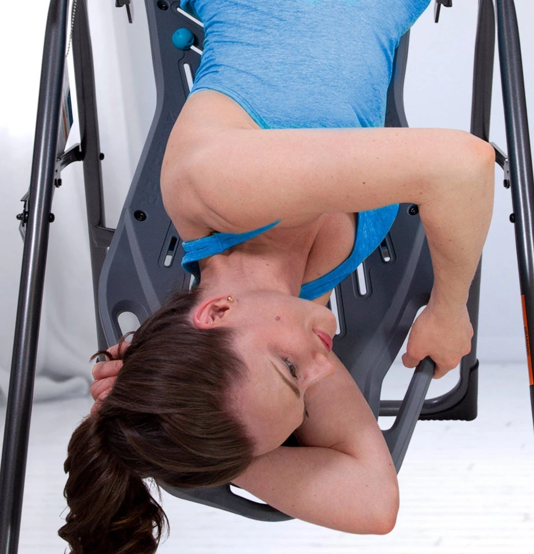 The Teeter FitSpine™ X2 Inversion Table includes upgraded features and accessories to elevate and enhance your inversion experience. The innovative FlexTech™ Bed supported by an 8-point suspension system flexes as you move and enables the best decompressive stretch. Ideal for back pain sufferers, the EZ‑Reach™ Ankle System with extended handle reduces bending when securing the ankle supports. For optimum ankle comfort, patented wrap-around Ergo-Embrace Supports are made of specialty, pressure-reducing foam and the Ankle Comfort Dial lets you easily customize your fit. Large Stretch Max™ Handles provide support and assistance. With the included Acupressure Nodes and Lumbar Bridge you can modify your stretch by adding healing pressure and increased decompression.