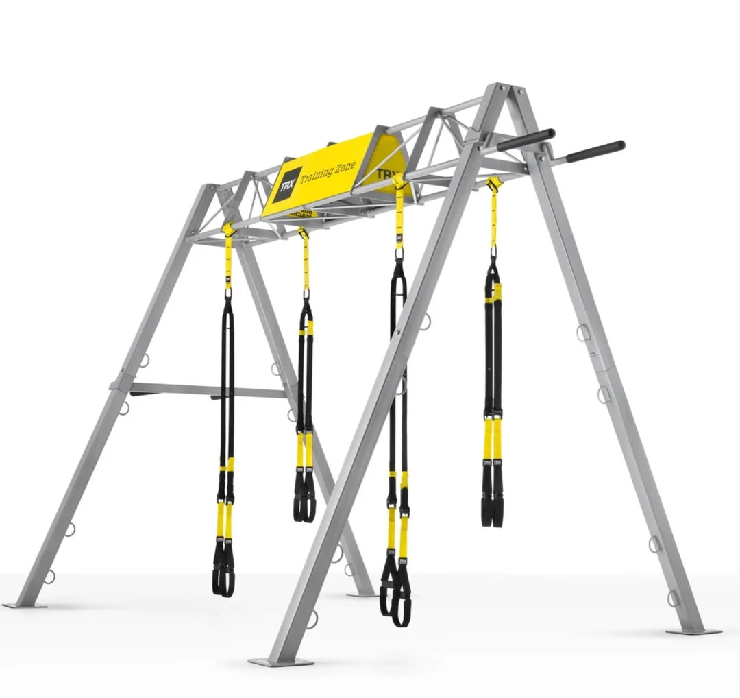 The TRX® S-Frame is a commercial grade steel, elevated structure that can support up to 22 TRX Suspension Trainers (30ft option).Â