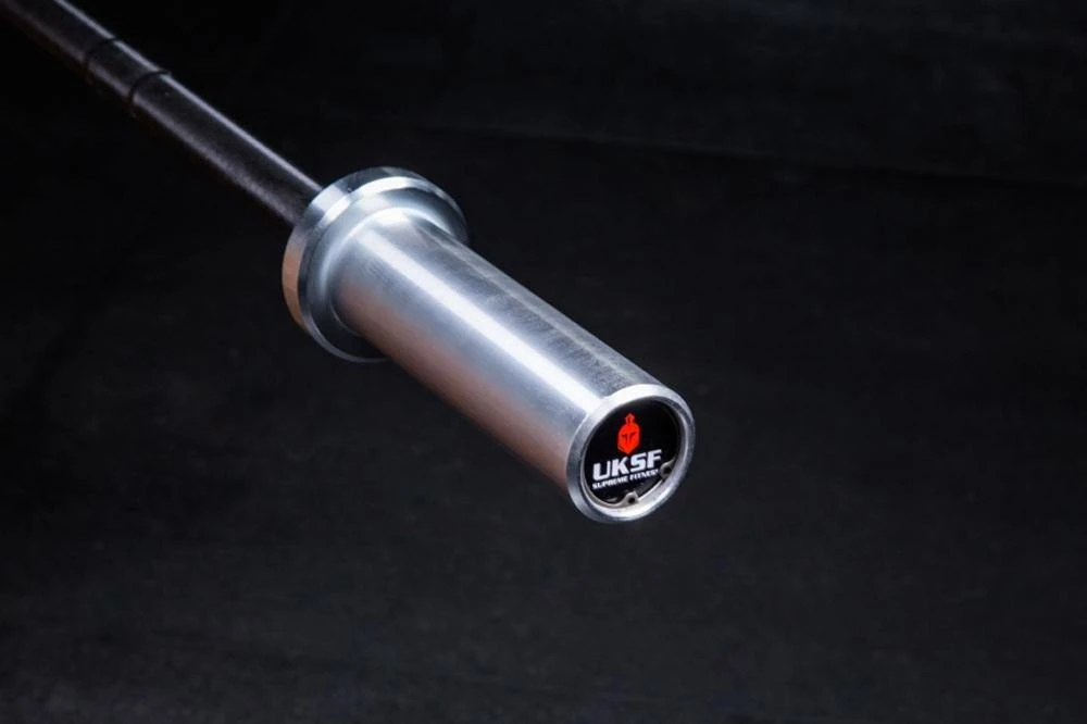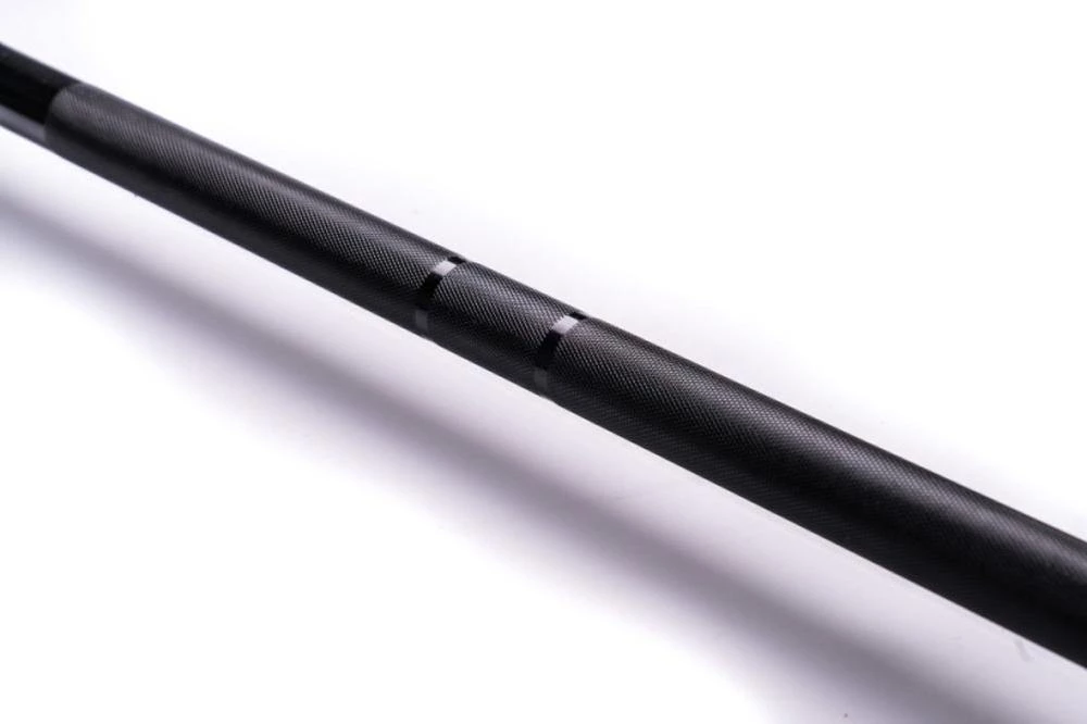 Our Training Bar includes a 25mm, 190,000 PSI tensile strength shaft with dual knurl marks for both Olympic and powerlifting, no centre knurl, and a black zinc coating. The bright zinc sleeves are cut short with a loadable length of 6-5/8″, while the distance between the collars is a competition standard 52-3/16″.