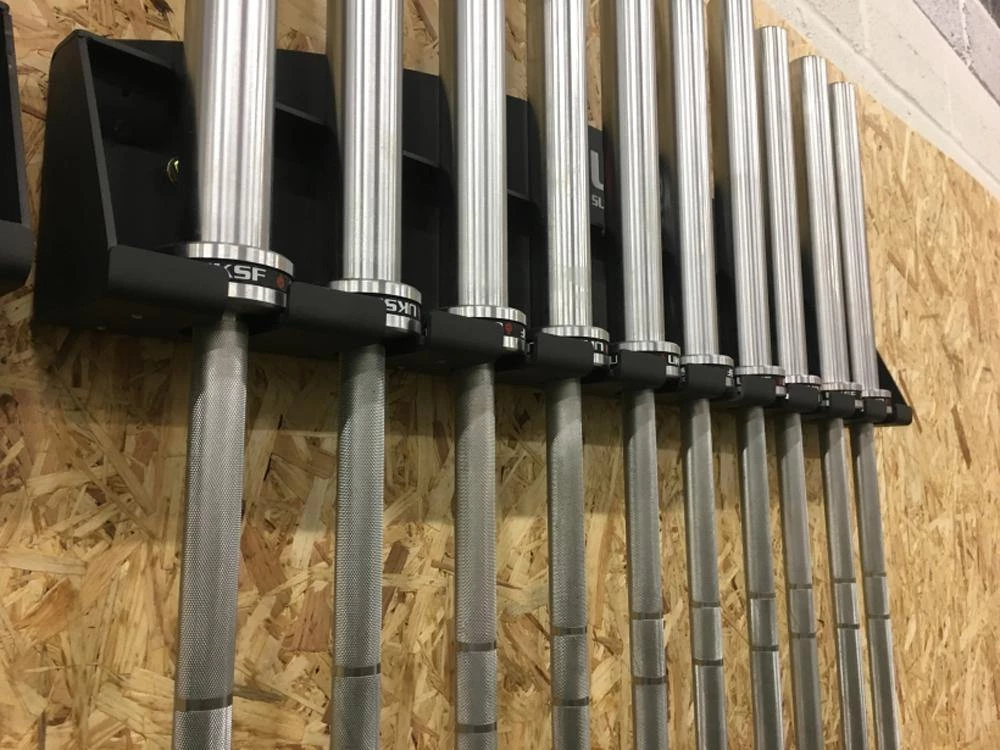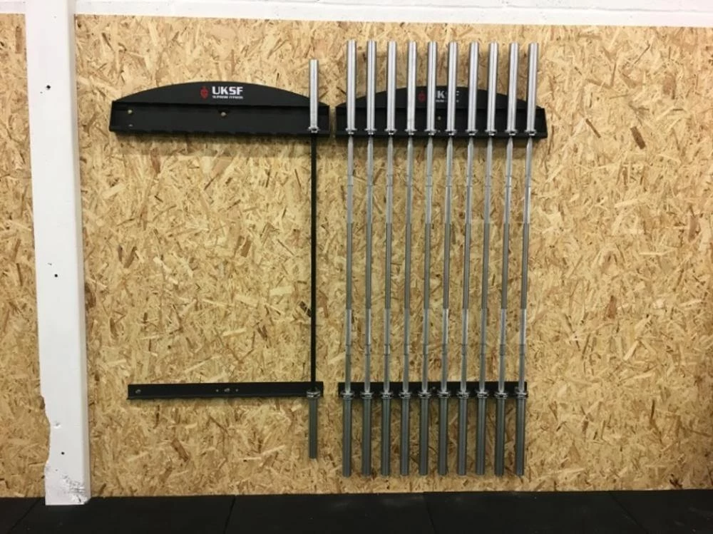 Custom racks can be made for specific barbell numbers. 10 bar gun rack
