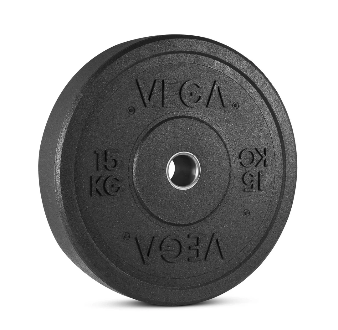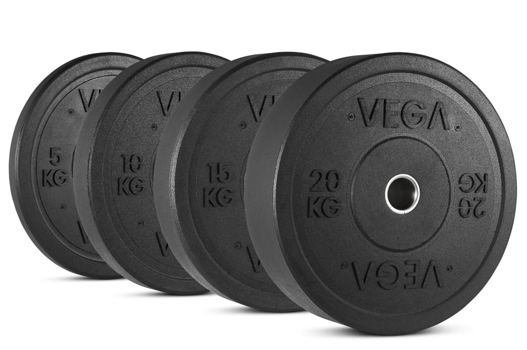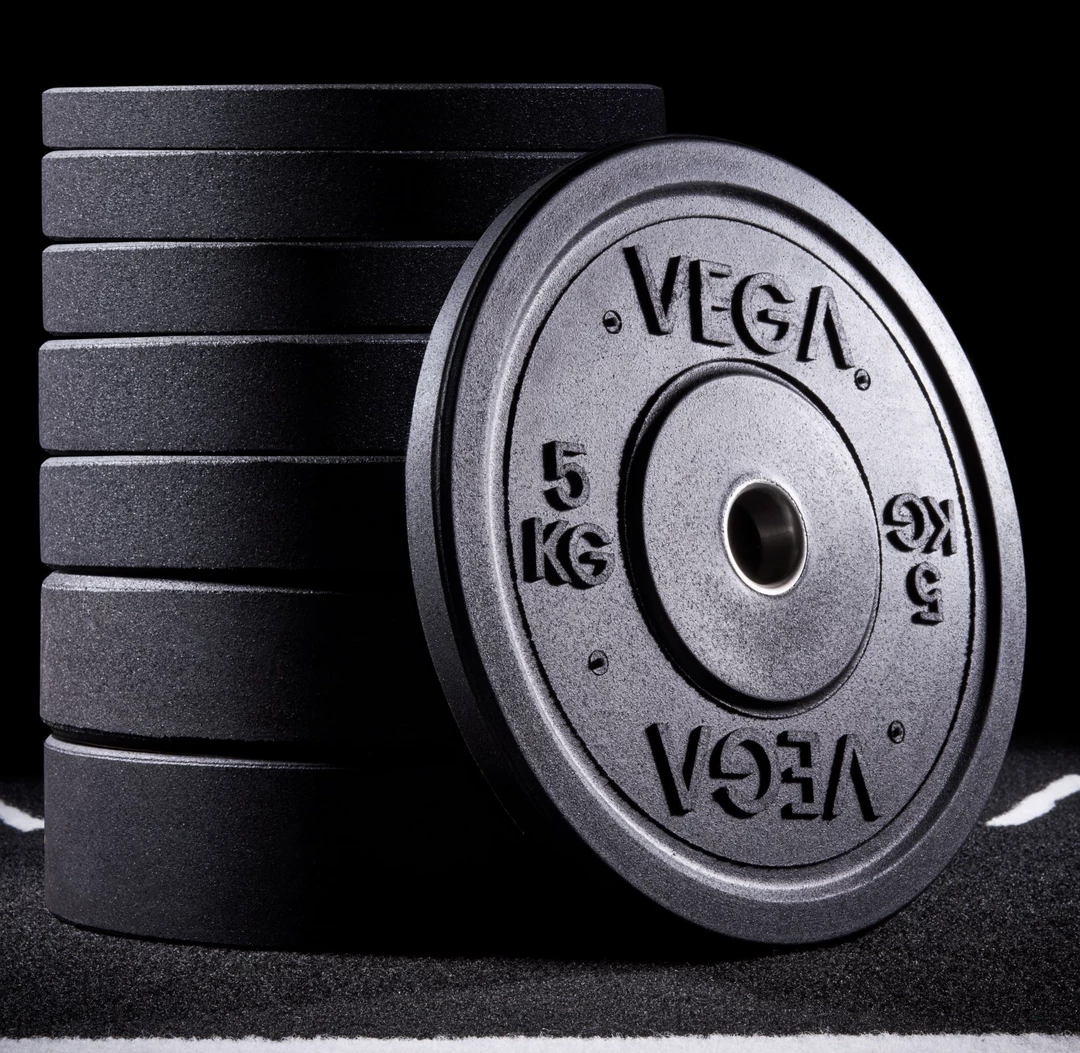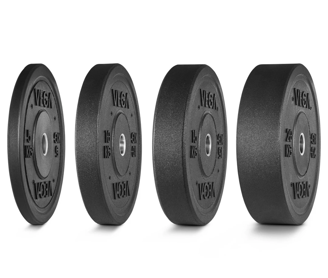 Maximize strength and minimize bounce using the Vega rubber crumb bumper Olympic weight plate.