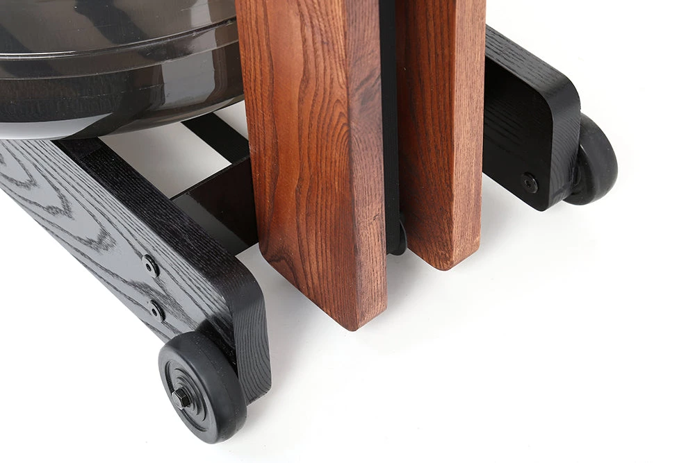 When not in use the Original Series WaterRower can be stood on end for space-saving storage. Transportation guide-wheels allow for the WaterRower to be moved around the home or fitness studio with ease.