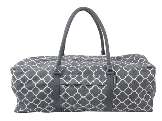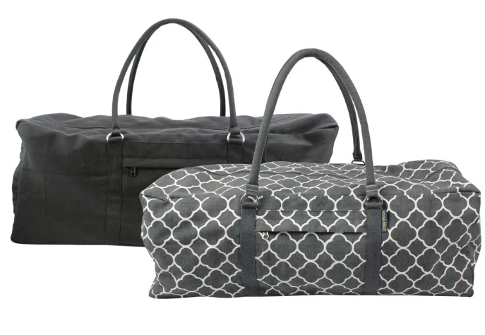 The Yoga Kit Bag is designed to take a full range of yoga equipment. This kit bag can accommodate props commonly used in Iyengar yoga and takes up to 4 full blocks, 1 yoga mat, 2 bricks, 1 blanket, and 1 belt. Also suitable for those wishing to carry a mat, towel, and a change of clothes to the gym. The long handles allow the bag to be carried by hand, over the shoulder, or like a rucksack. This bag can also carry the Pilates-Mad 15mm Pilates Mat or the Extra Wide Studio Yoga Mat 80cm as the extra-long zip opening allows for easy access for bulkier items, but they will protrude from one end. Featuring two pockets, one on the side and one at the end for storing your essentials whilst you practice. 100% cotton outer with showerproof polyester lining.