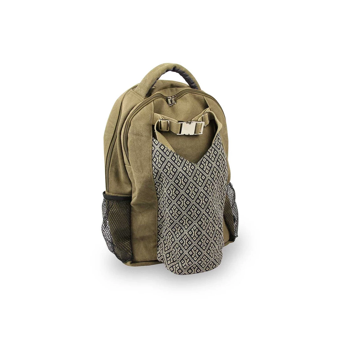 This rucksack can carry up to 6mm yoga mat, and it’s also multifunctional! Ideal for commuting before or after work, and can also be used as a; gym, walking hiking, cycling, or travel bag. The outer is made from 100% cotton, and the internal lining is polyester.Â