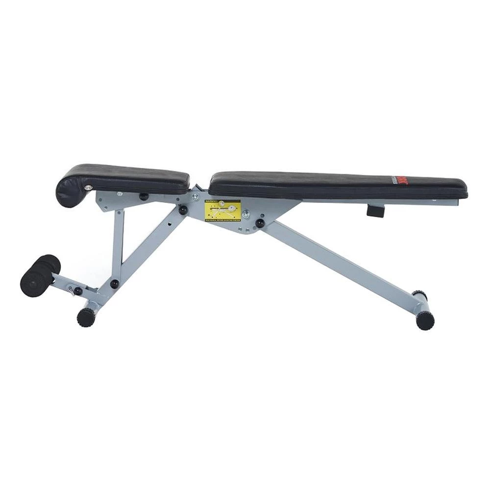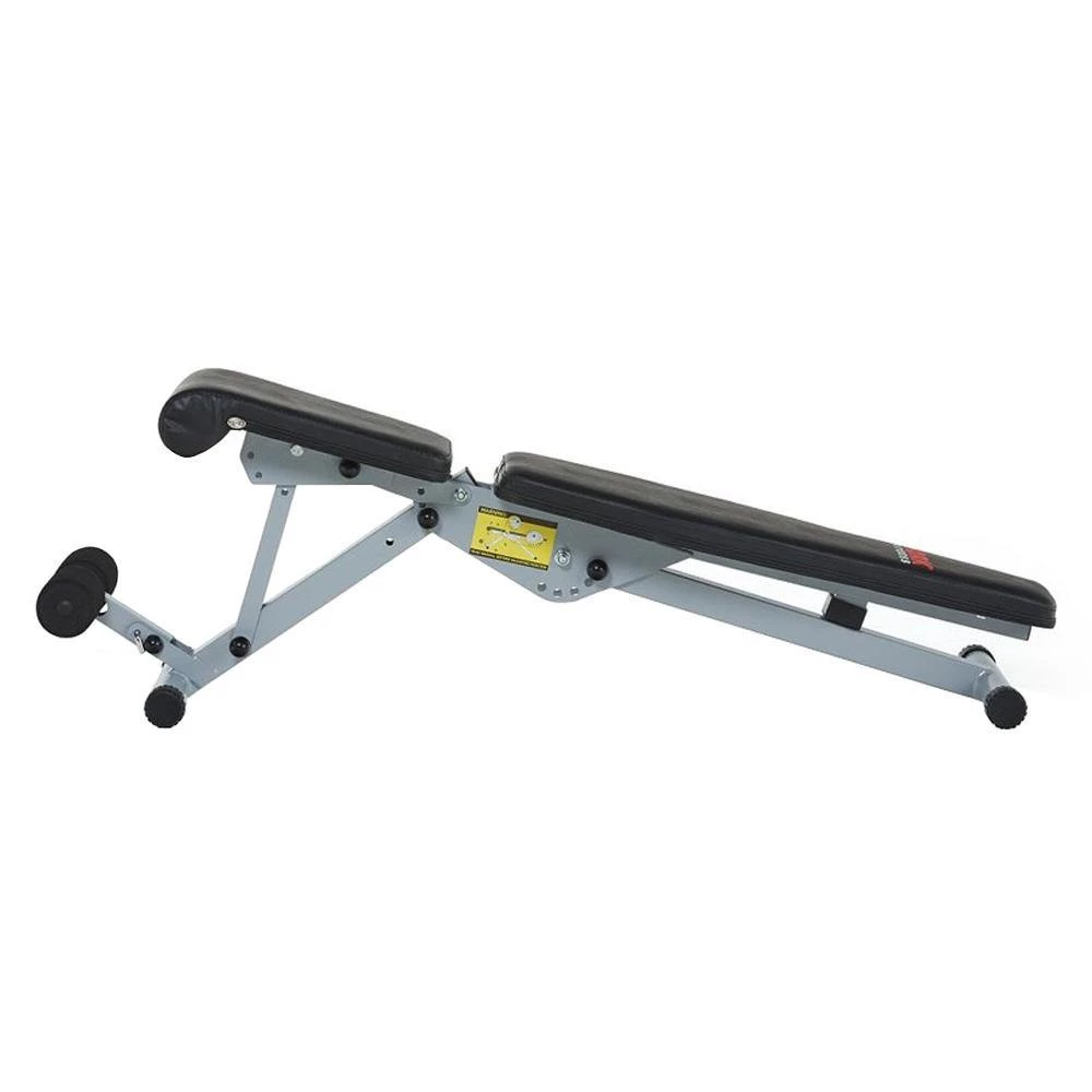 The bench can be easily adjusted into 13 workout positions from decline to flat and up to a 70 degree angled incline.