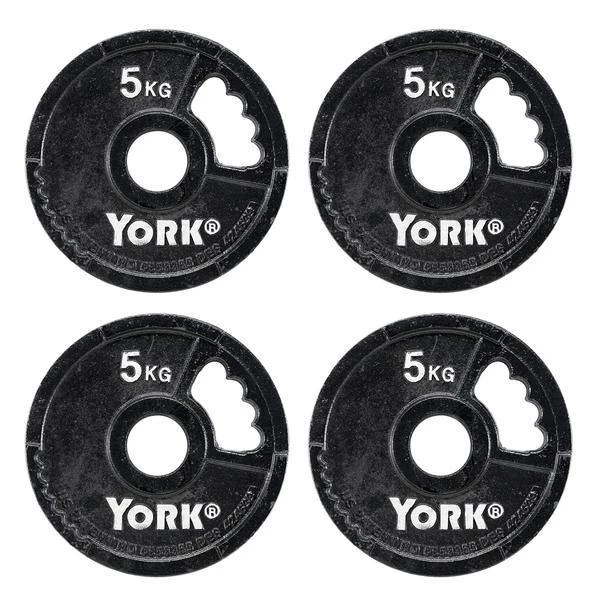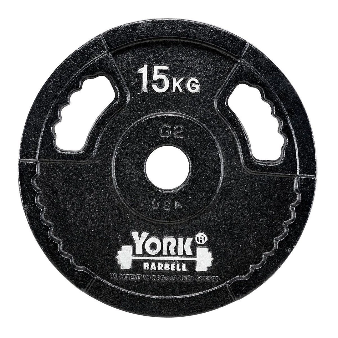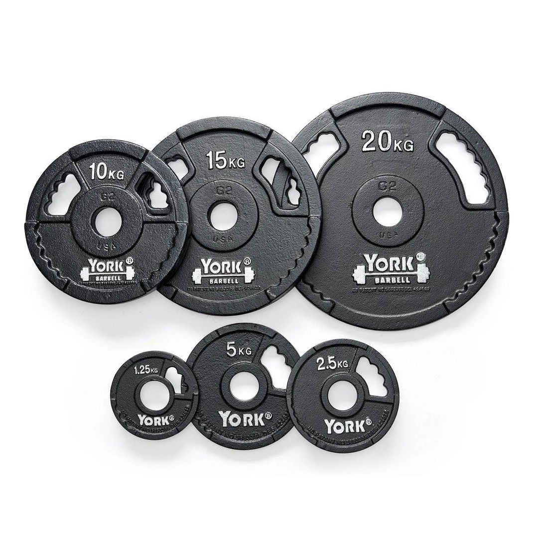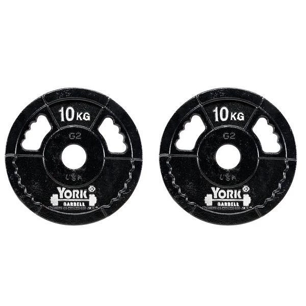 TheΒ York Barbell G2 Cast Iron Olympic Weight Plates are thinner than traditional rubber plates and feature an interlocking design.