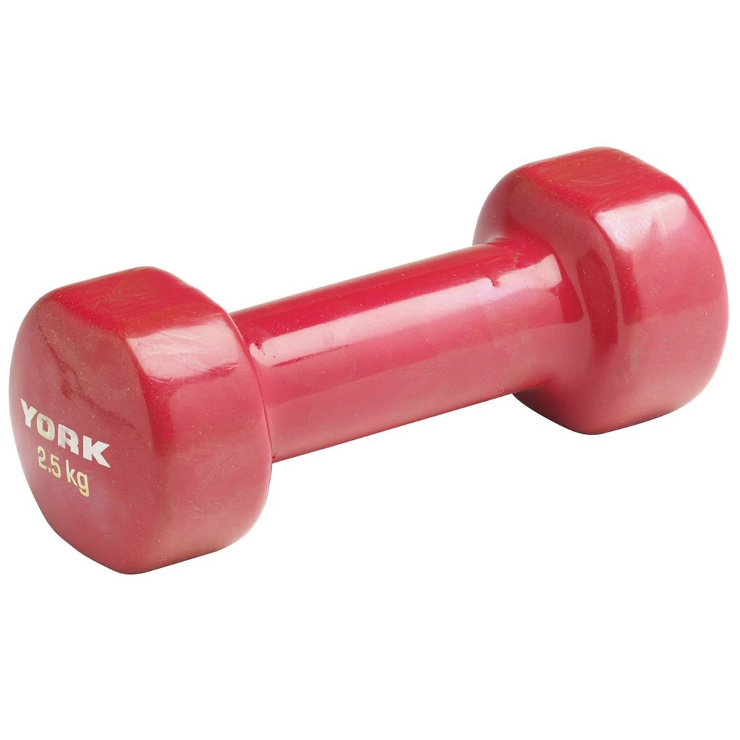 With a soft vinyl coated design, these dumbbells are an ideal option for people new to weightlifting or anyone wanting to add light resistance to their training. Due to their flattened end shape, the York Fitness Vinyl Dipped Dumbbells do not roll away when place on the ground. Their vinyl encased heads limit wear and tear to the dumbbells, making them durable and easy to wipe clean after use.